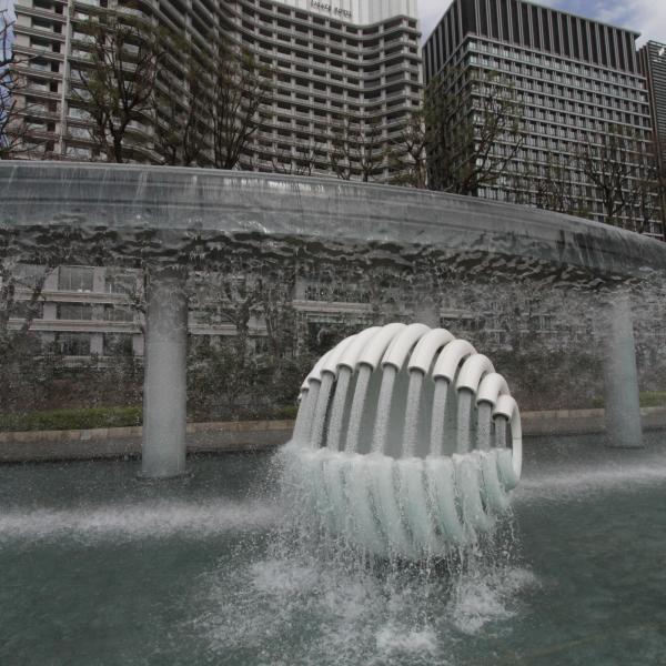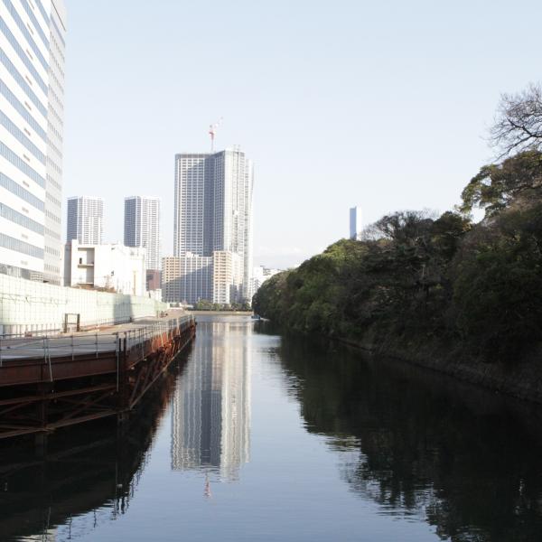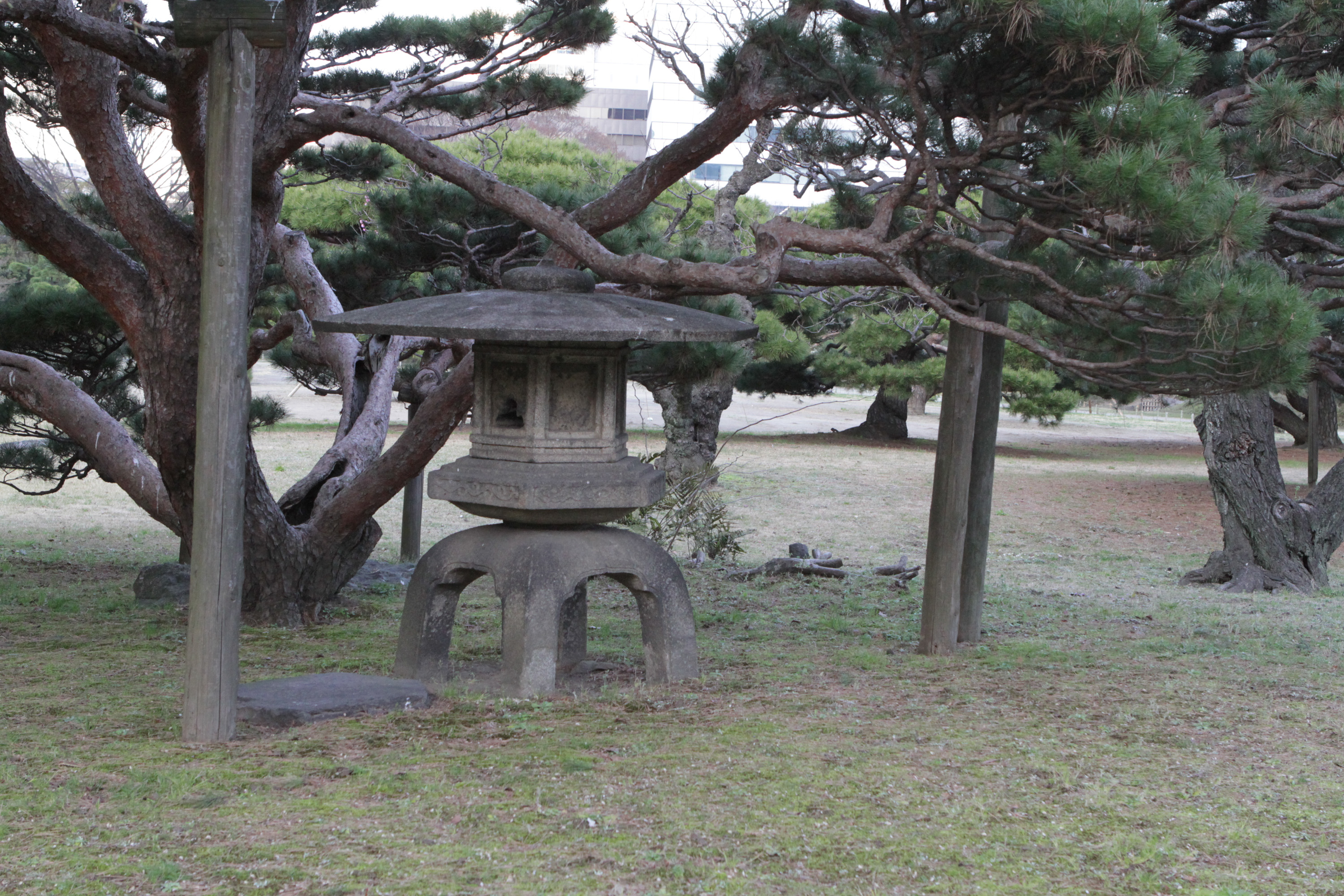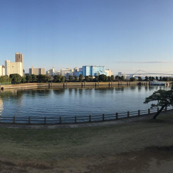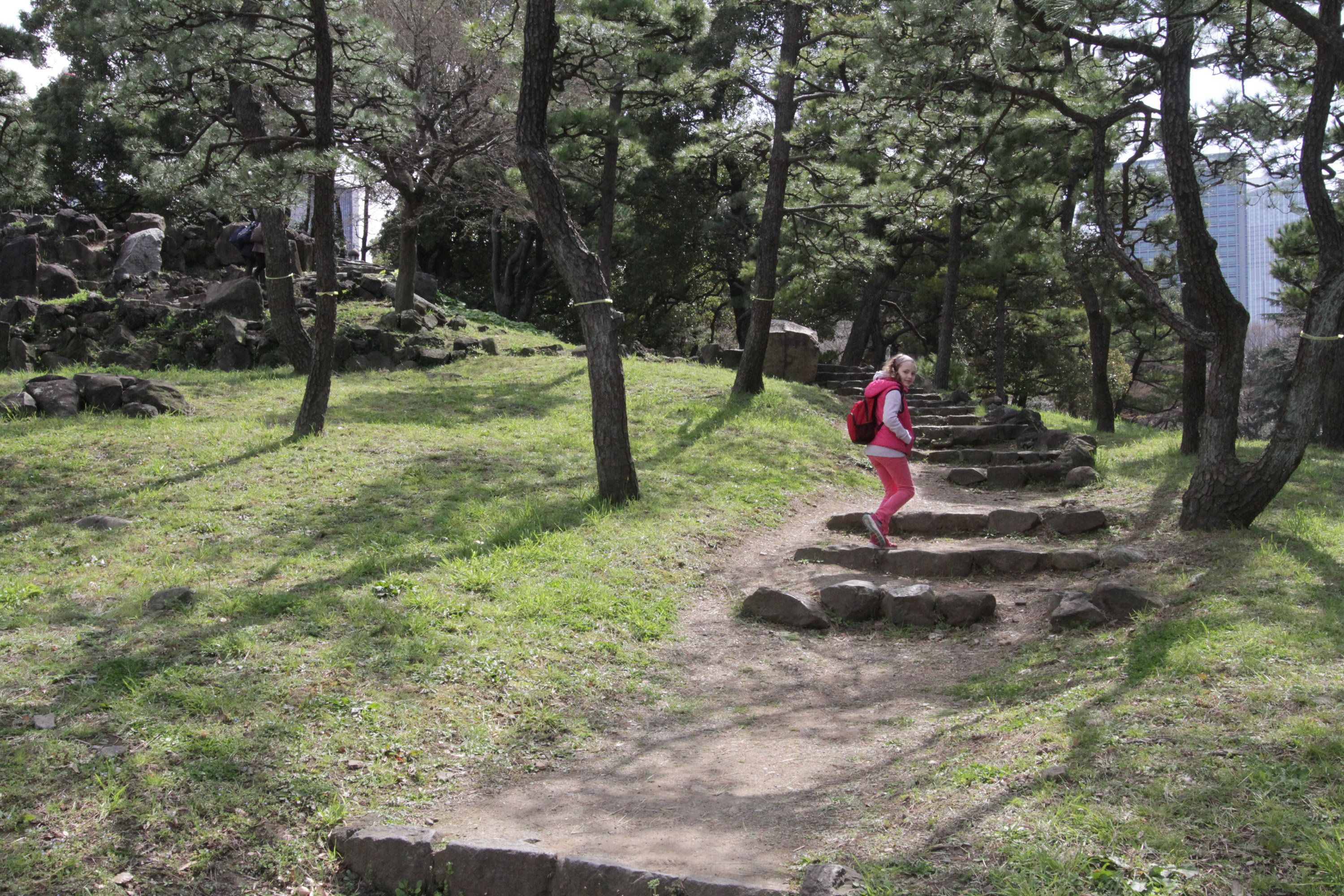 Poursuite de la promenade le long de la voie express jusqu’au jardin Hama-rikyû. Ses douves et l’un de ses étangs sont alimentés par l’eau de mer de la baie de Tokyo, à l’embouchure de la Sumida. Son autre particularité est certainement la richesse de sa végétation : plantations de pivoines et de colza, pin noir (l’un des plus anciens de Tokyo), pruniers en fleur, érables palmés, et quelques pins râblés typiques de la région. C’est un lieu en rupture totale avec la horde de gratte-ciels qui le borde.