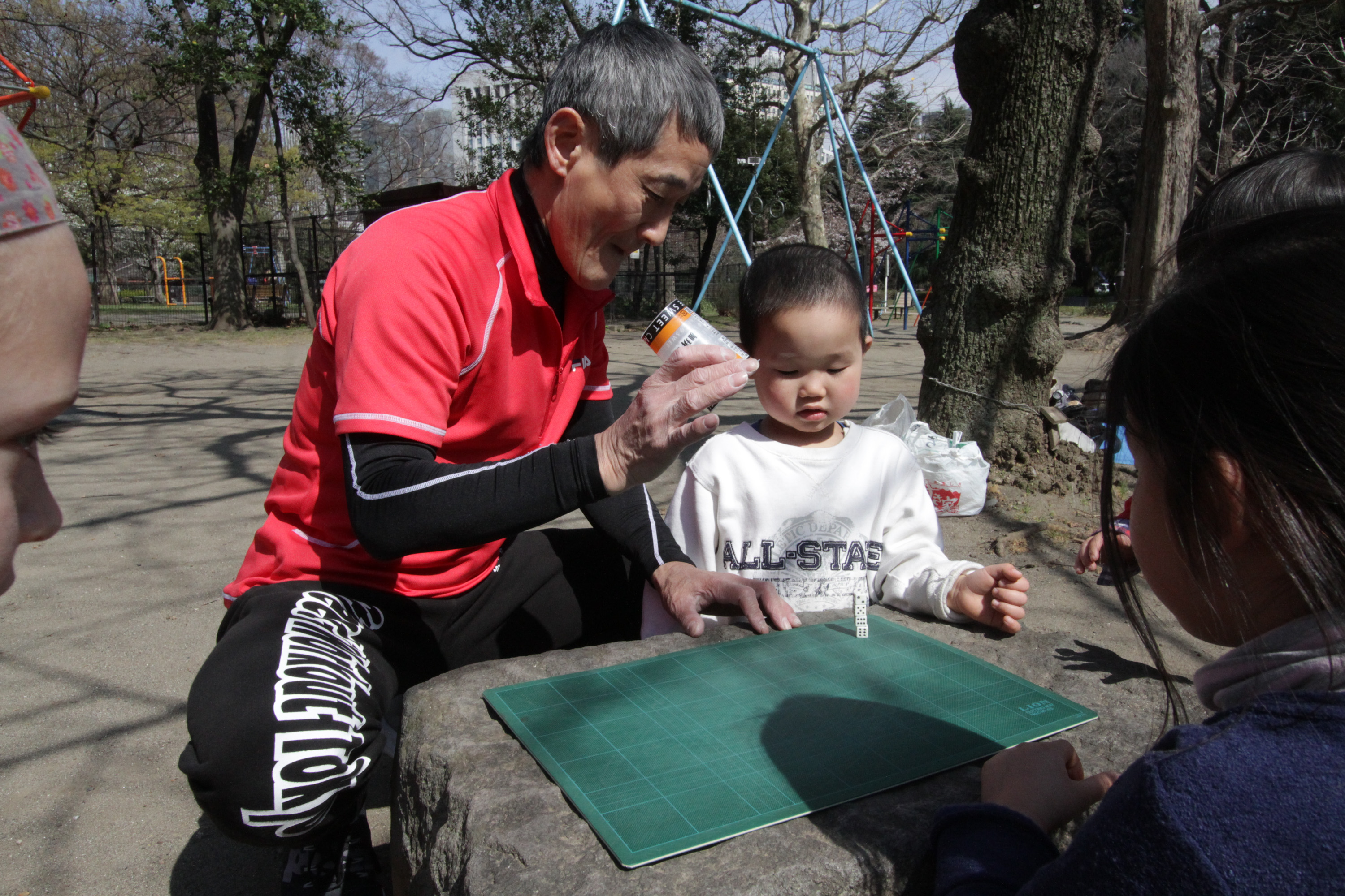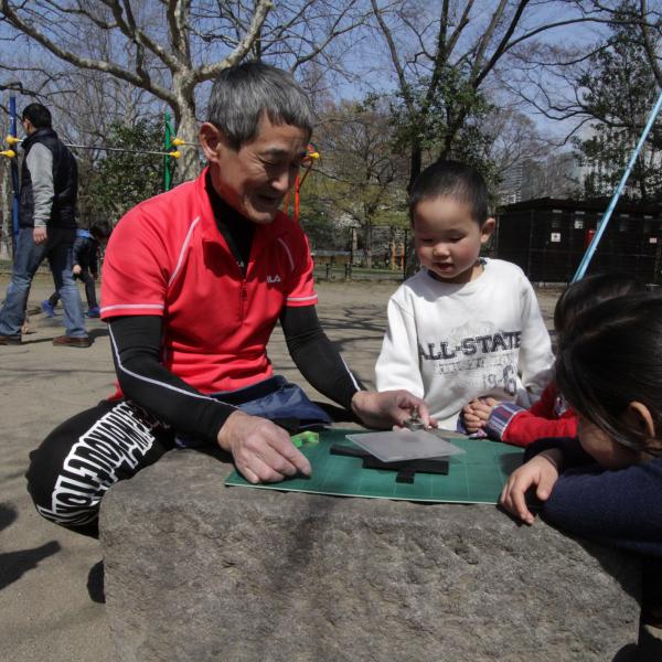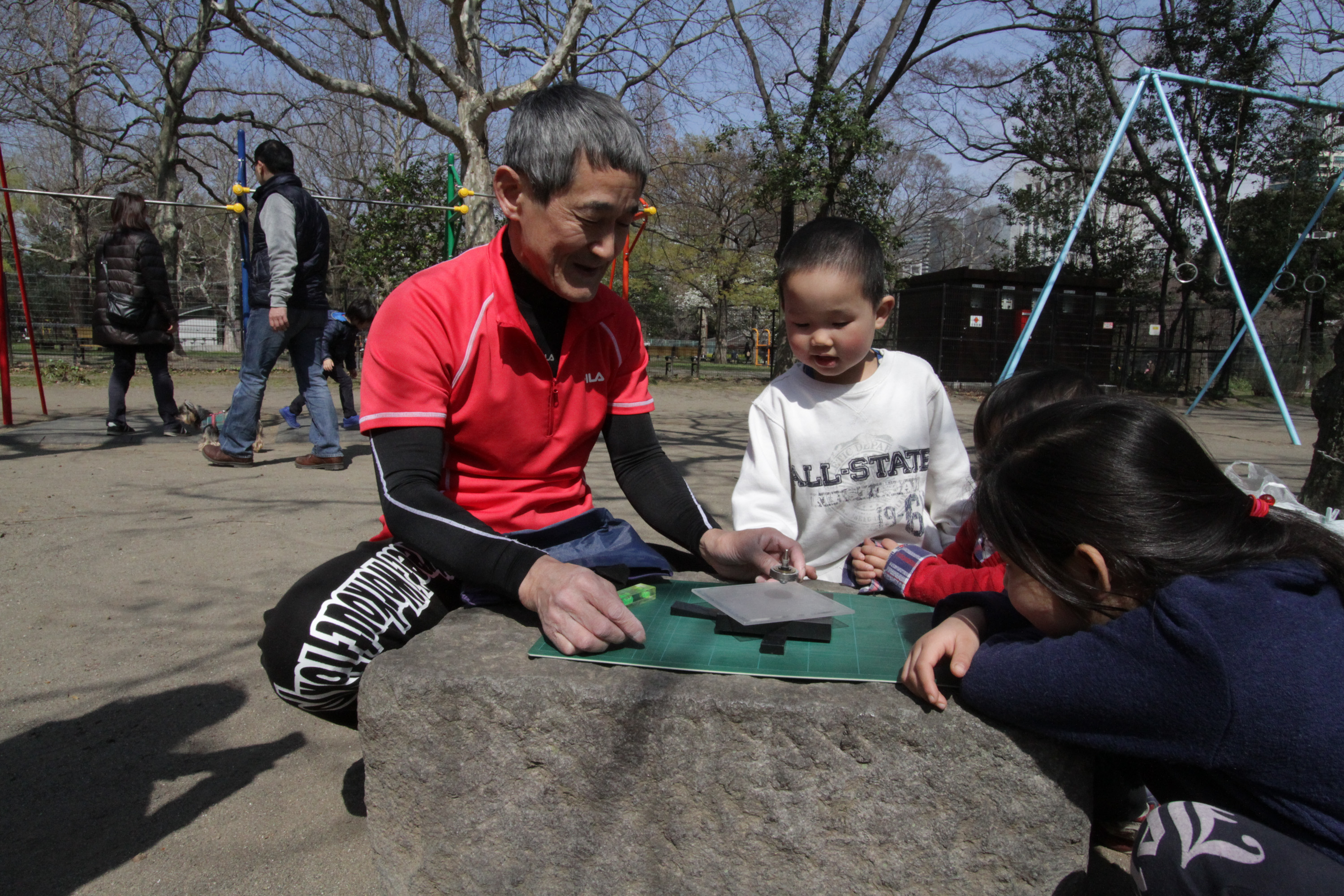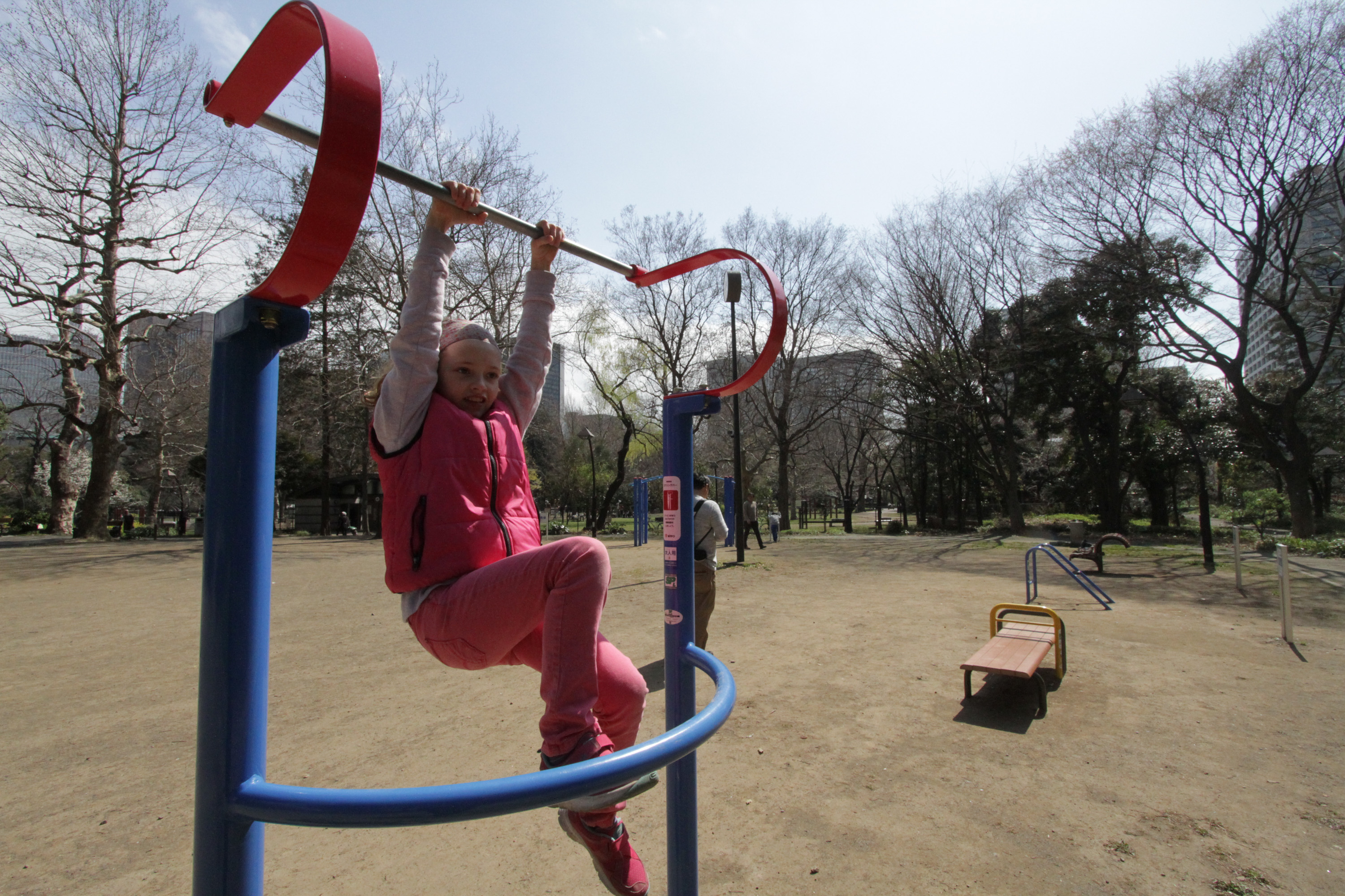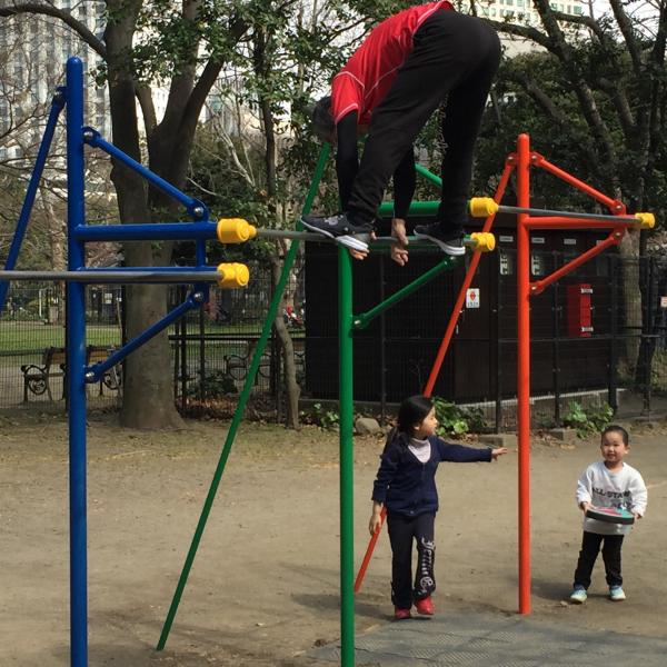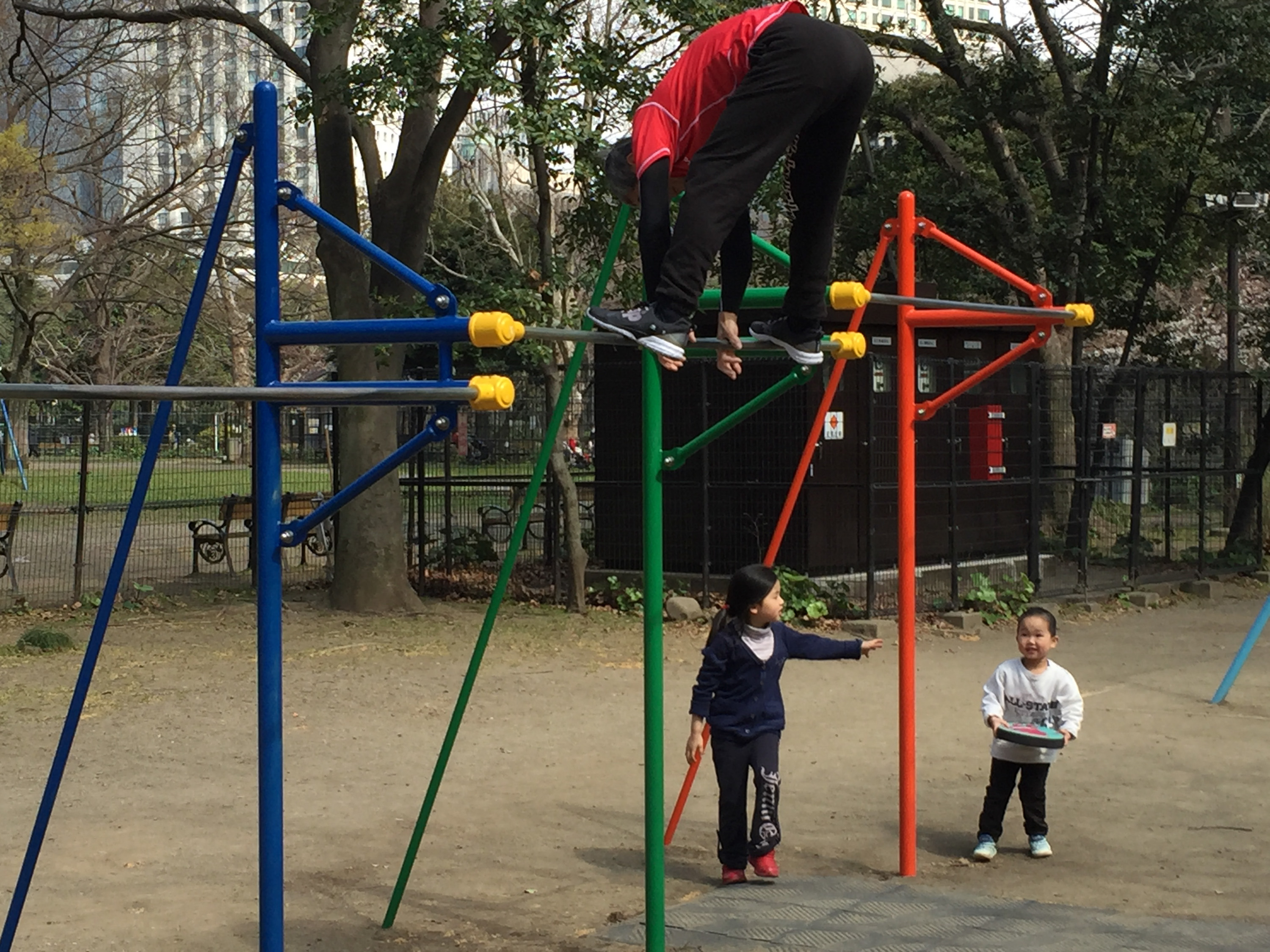 En longeant sa douve sud, nous sommes passés par le parc Hibiya Koen ; que nous n’avions prévu que de traverser… Jo nous a charmés et retenus plus d’une heure : c’est un habitué du lieu, un athlète accompli aux agrès et un féru de casse-têtes qui bluffe les petits et les grands. Il a fait une chaîne YouTube de toutes ses passions.