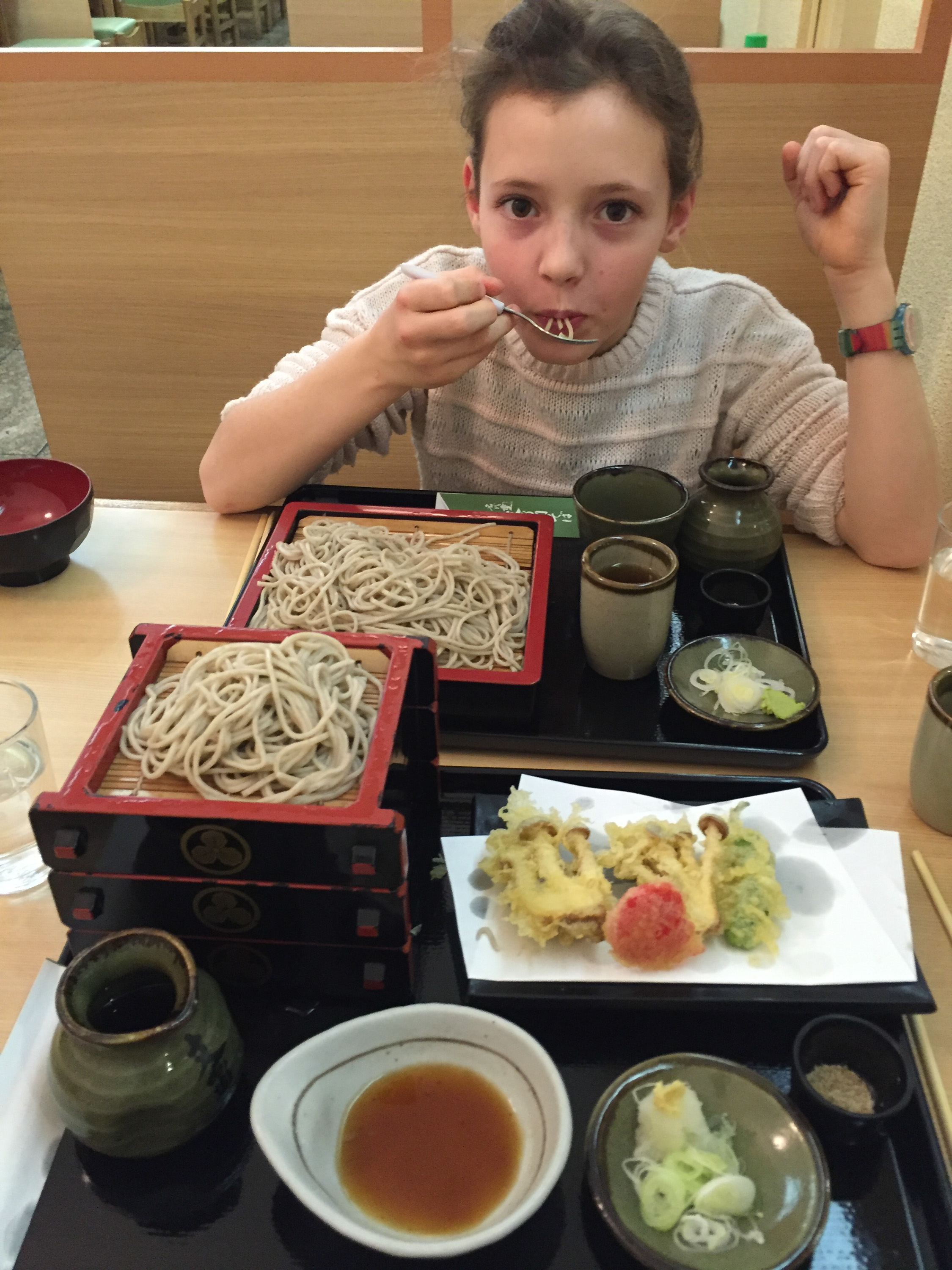 Plus tard, on a visité le jardin Hama-rikyû. Puis on est monté au World Trade Center Observatory. Depuis le haut (40ème étage) on a pu voir la tour de Tokyo (la Tour Eiffel du Japon). Et on est rentré. Au repas de ce soir, sobas froids