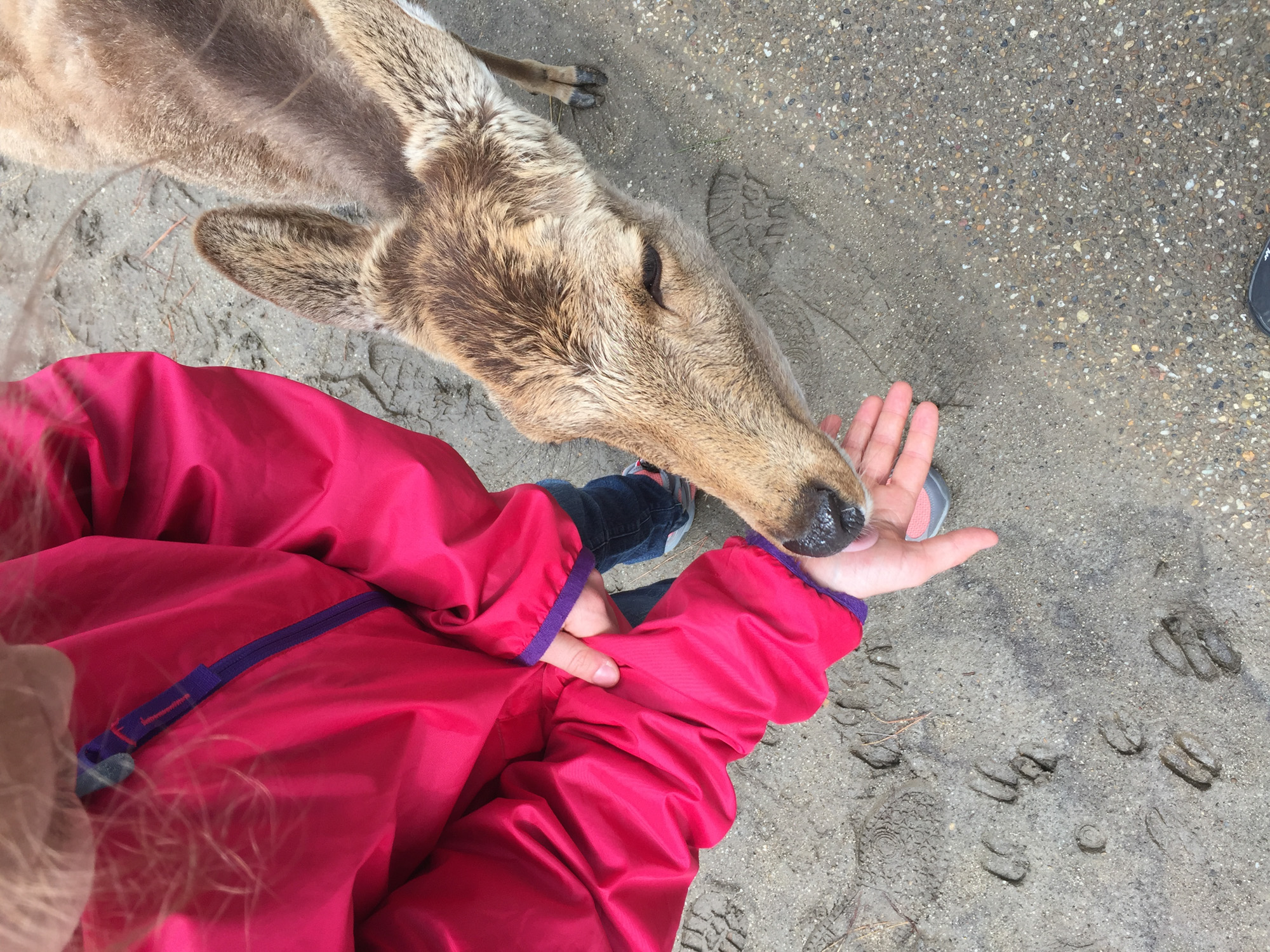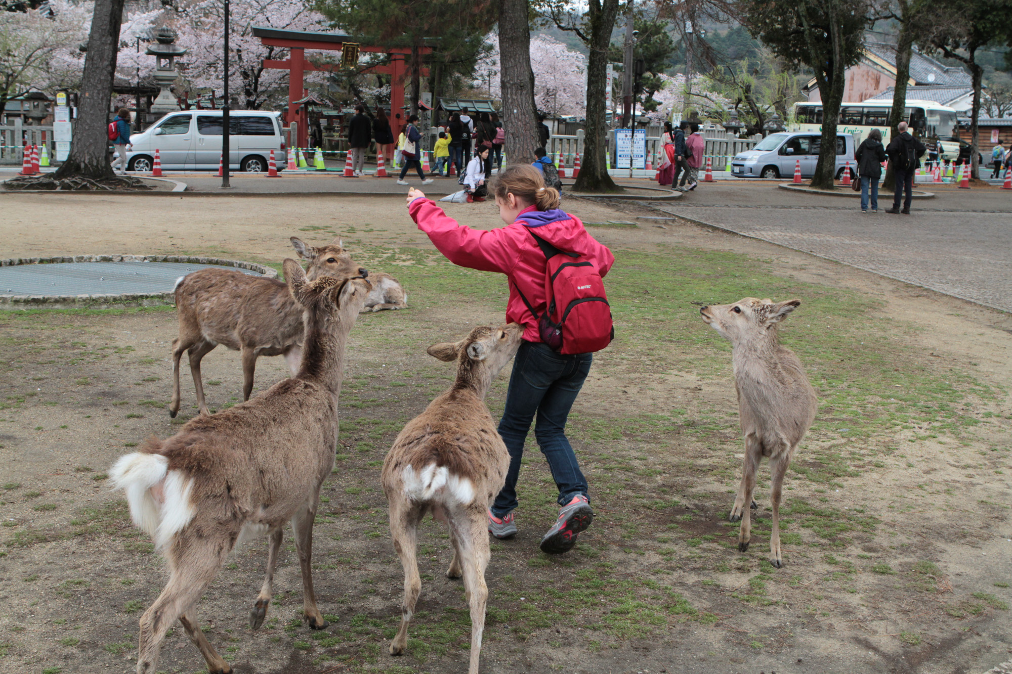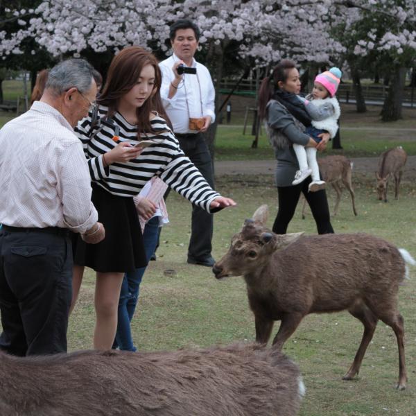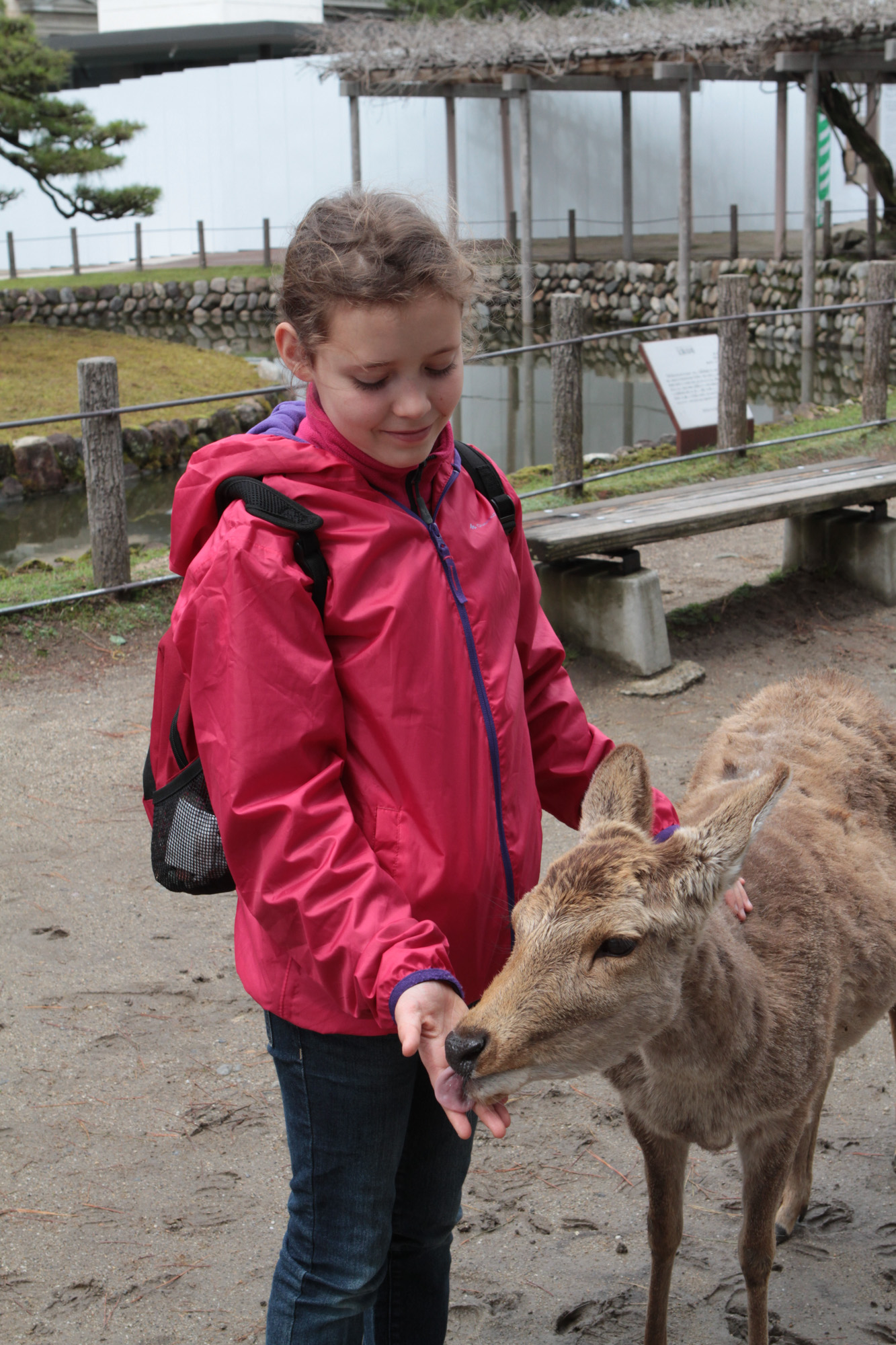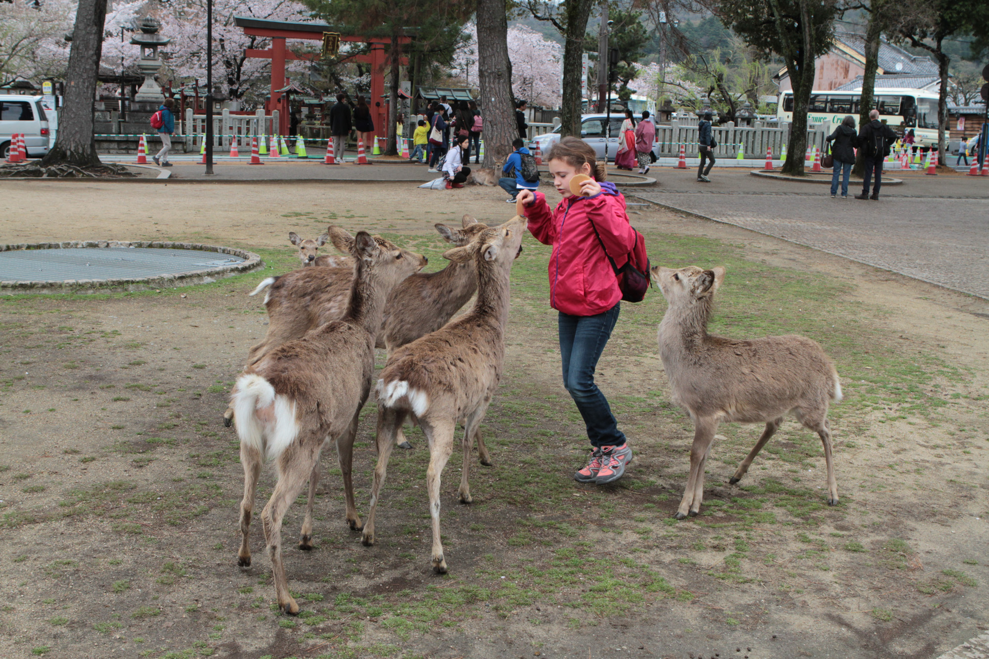 On est allé voir des cerfs shika, on les a caressés et on leur a donné à manger des galettes de riz. Ils m’ont arraché les paquets des mains et tiraient mes habits pour en avoir.