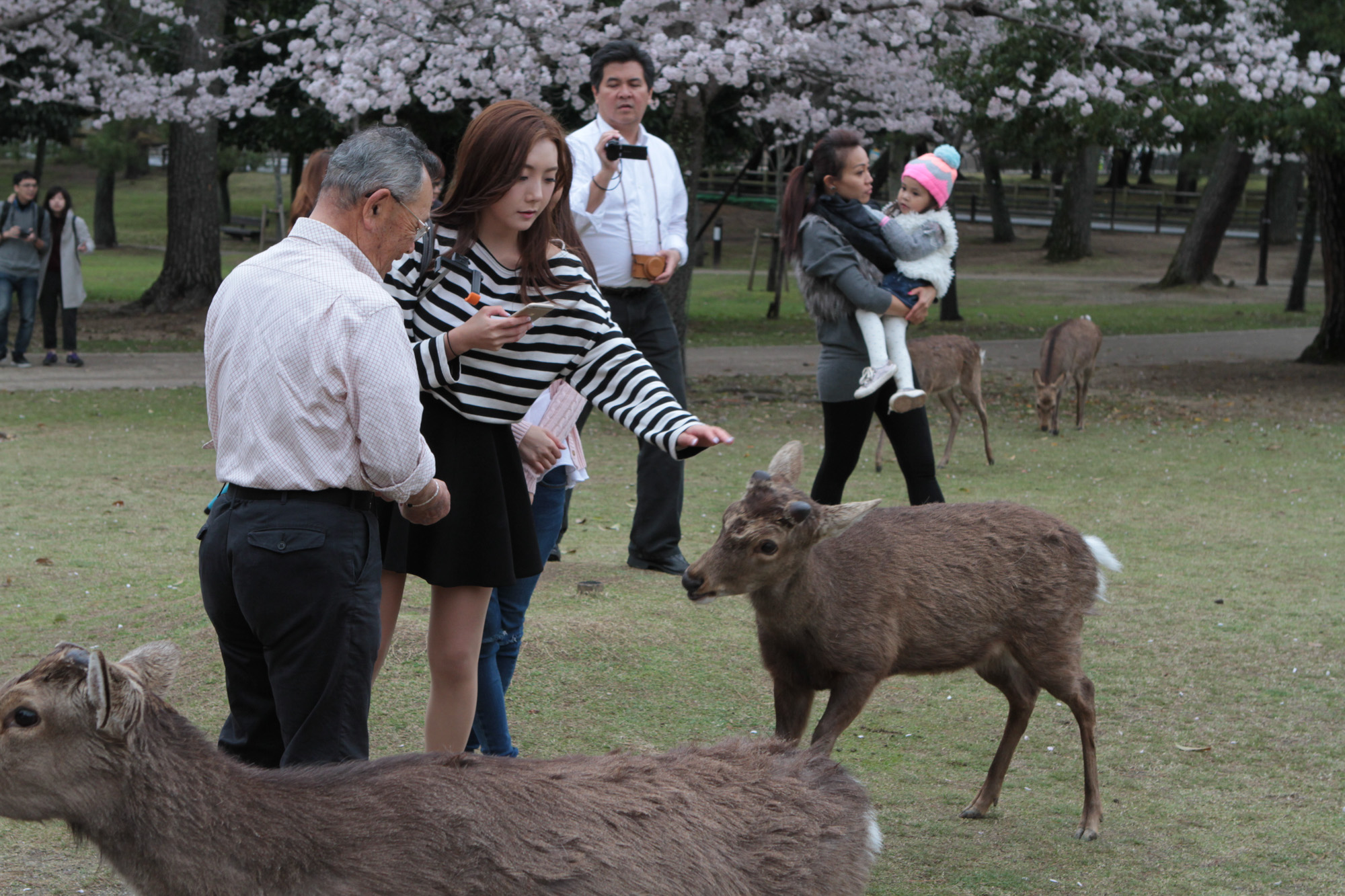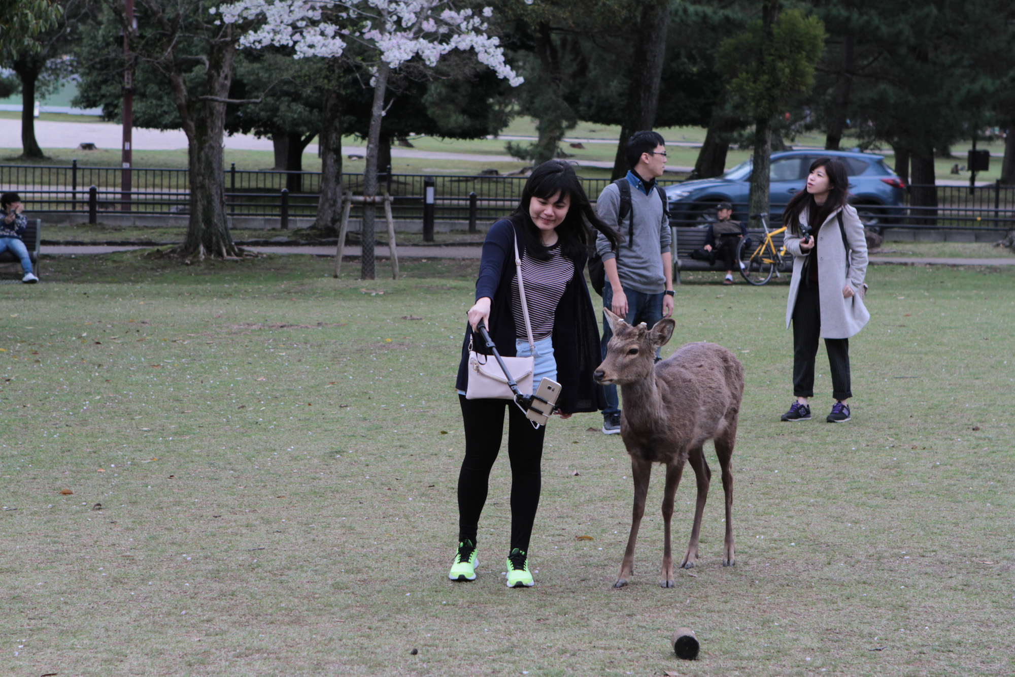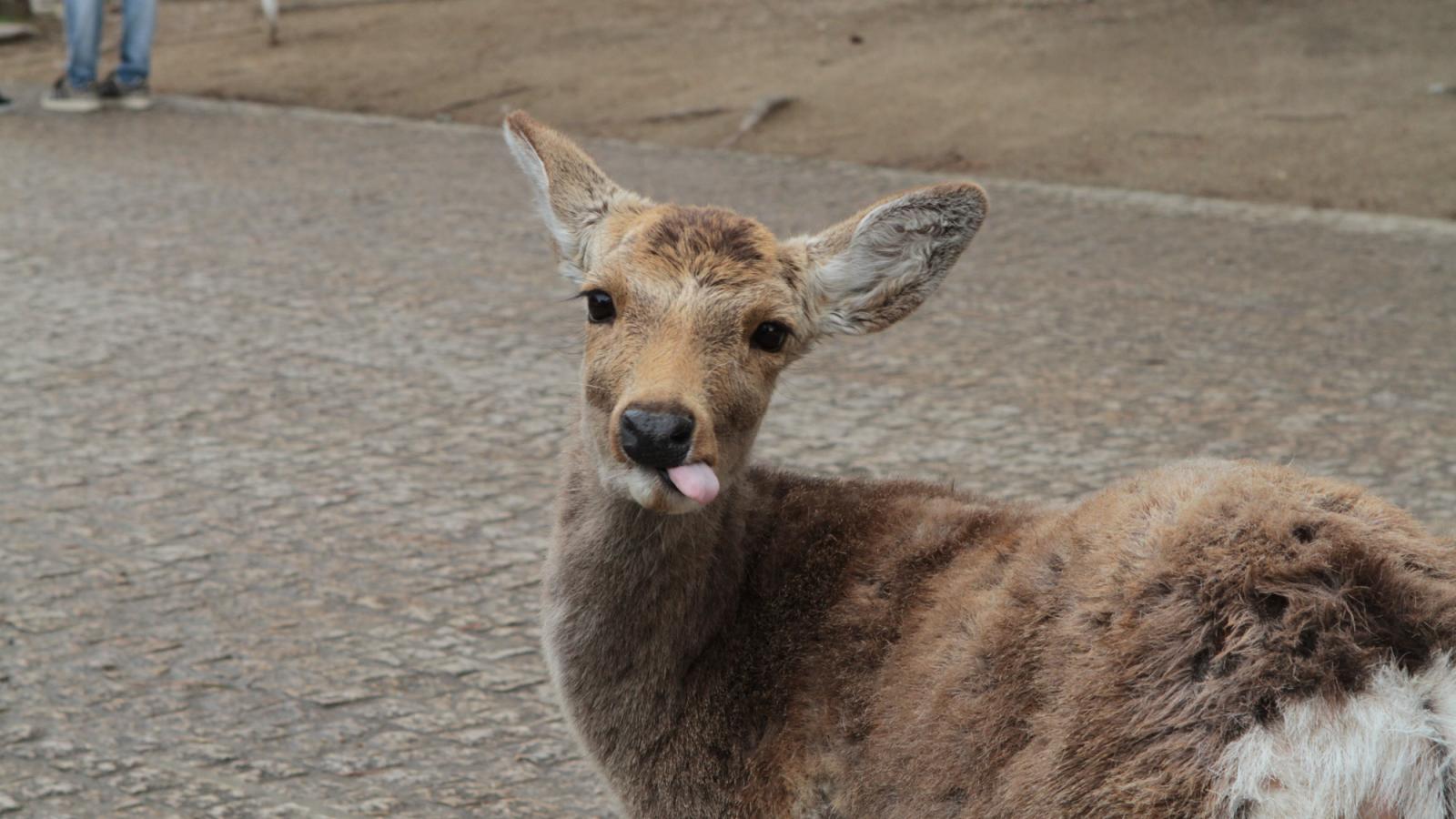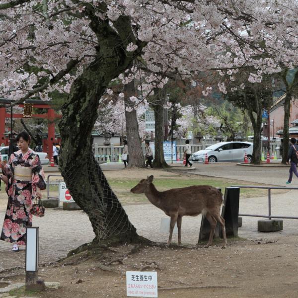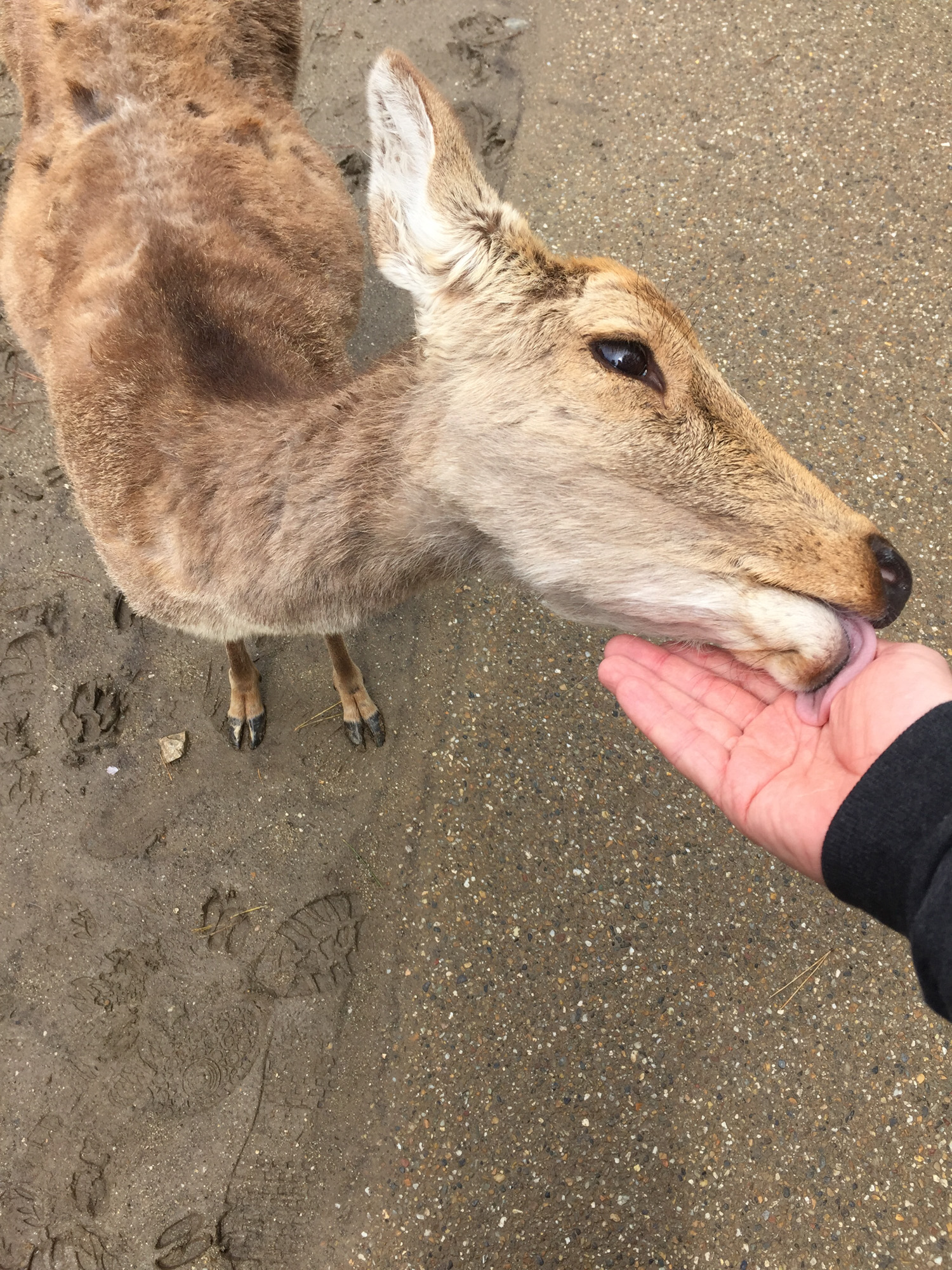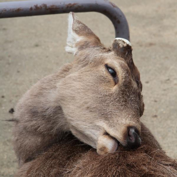 On est allé voir des cerfs shika, on les a caressés et on leur a donné à manger des galettes de riz. Ils m’ont arraché les paquets des mains et tiraient mes habits pour en avoir.