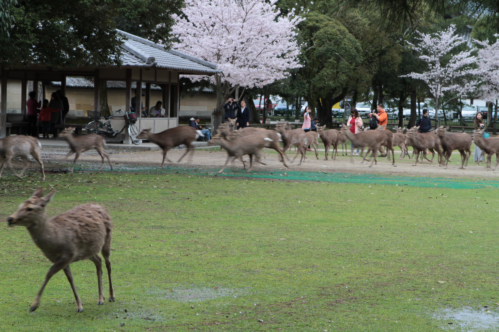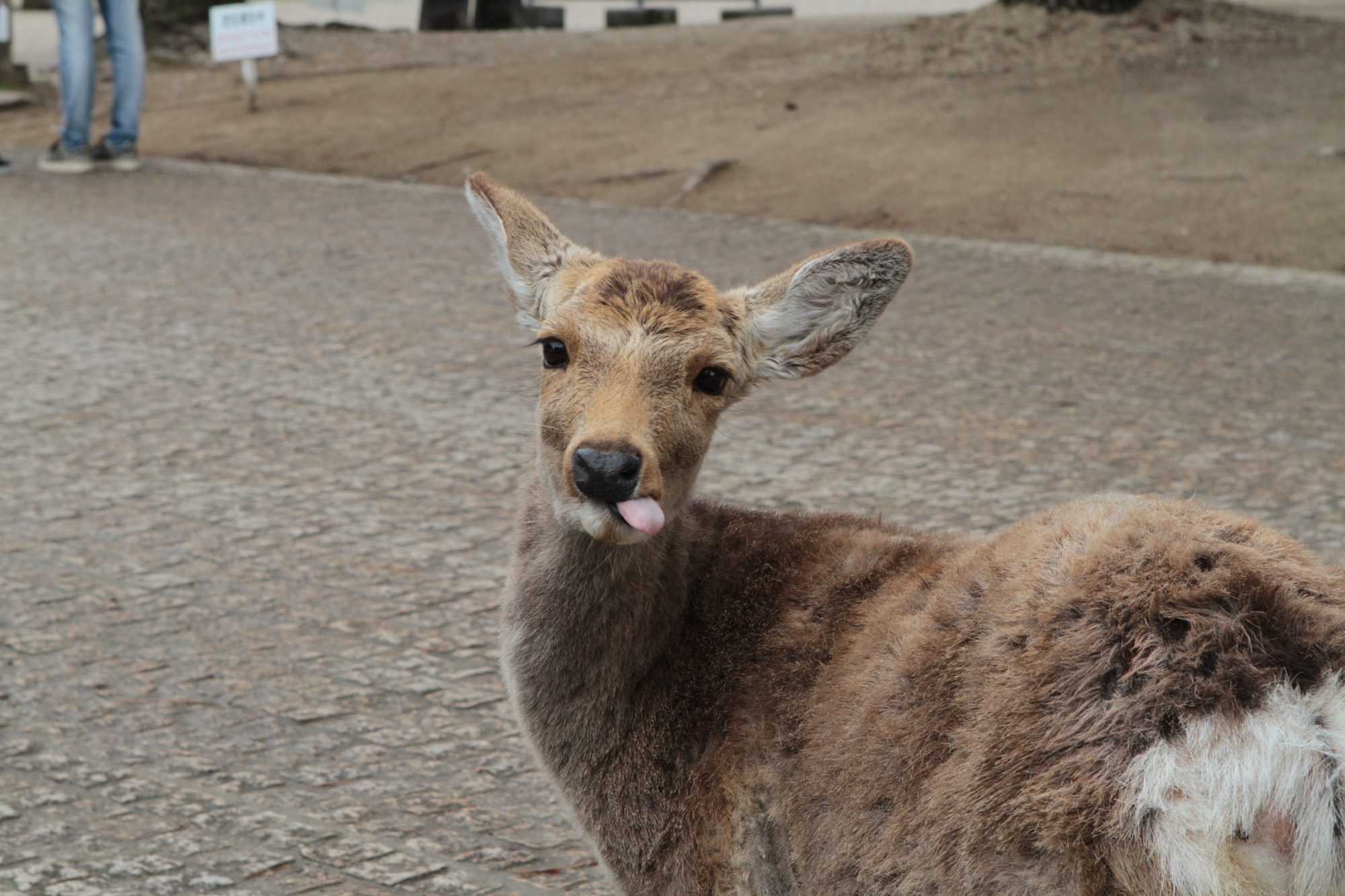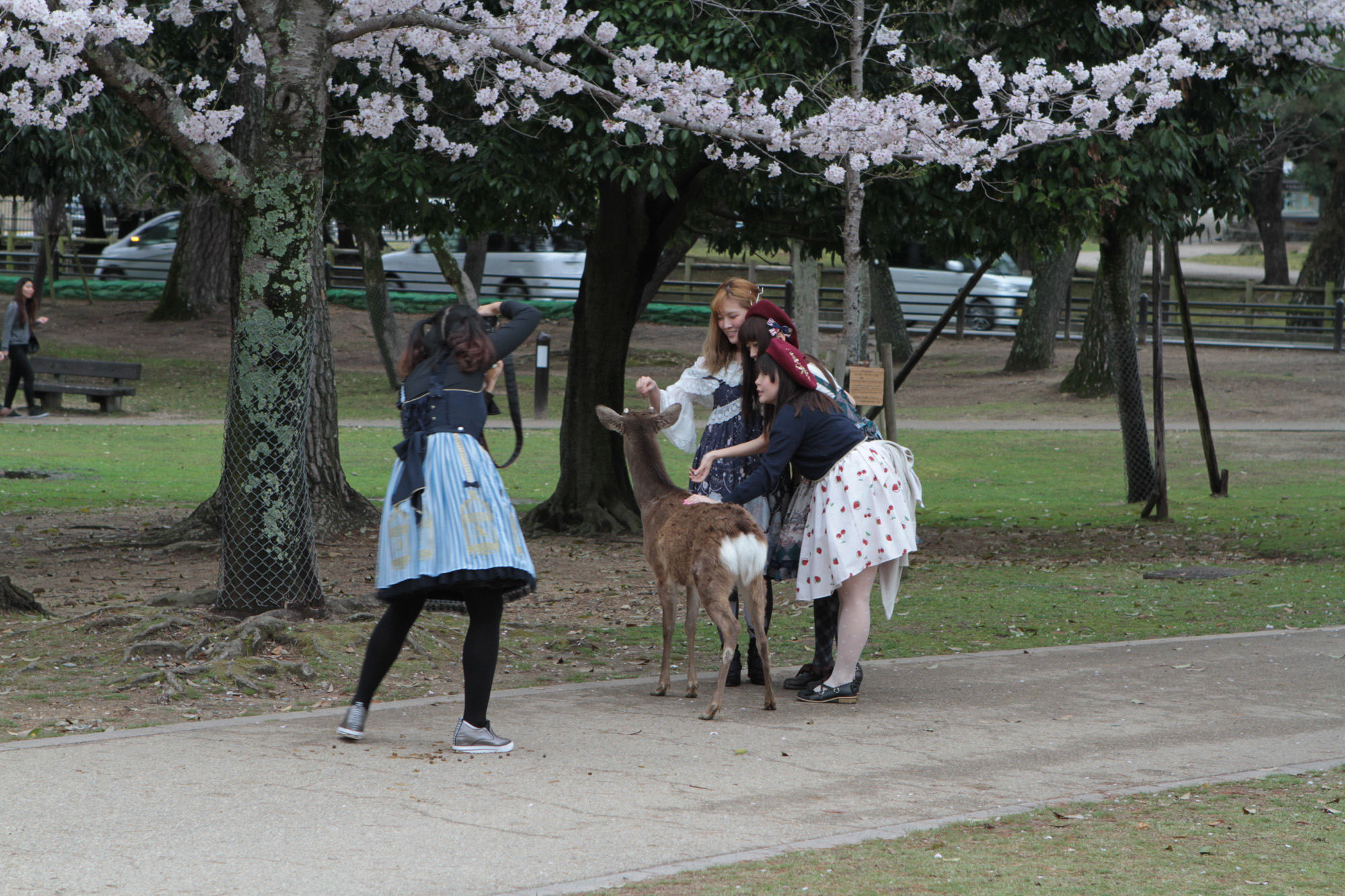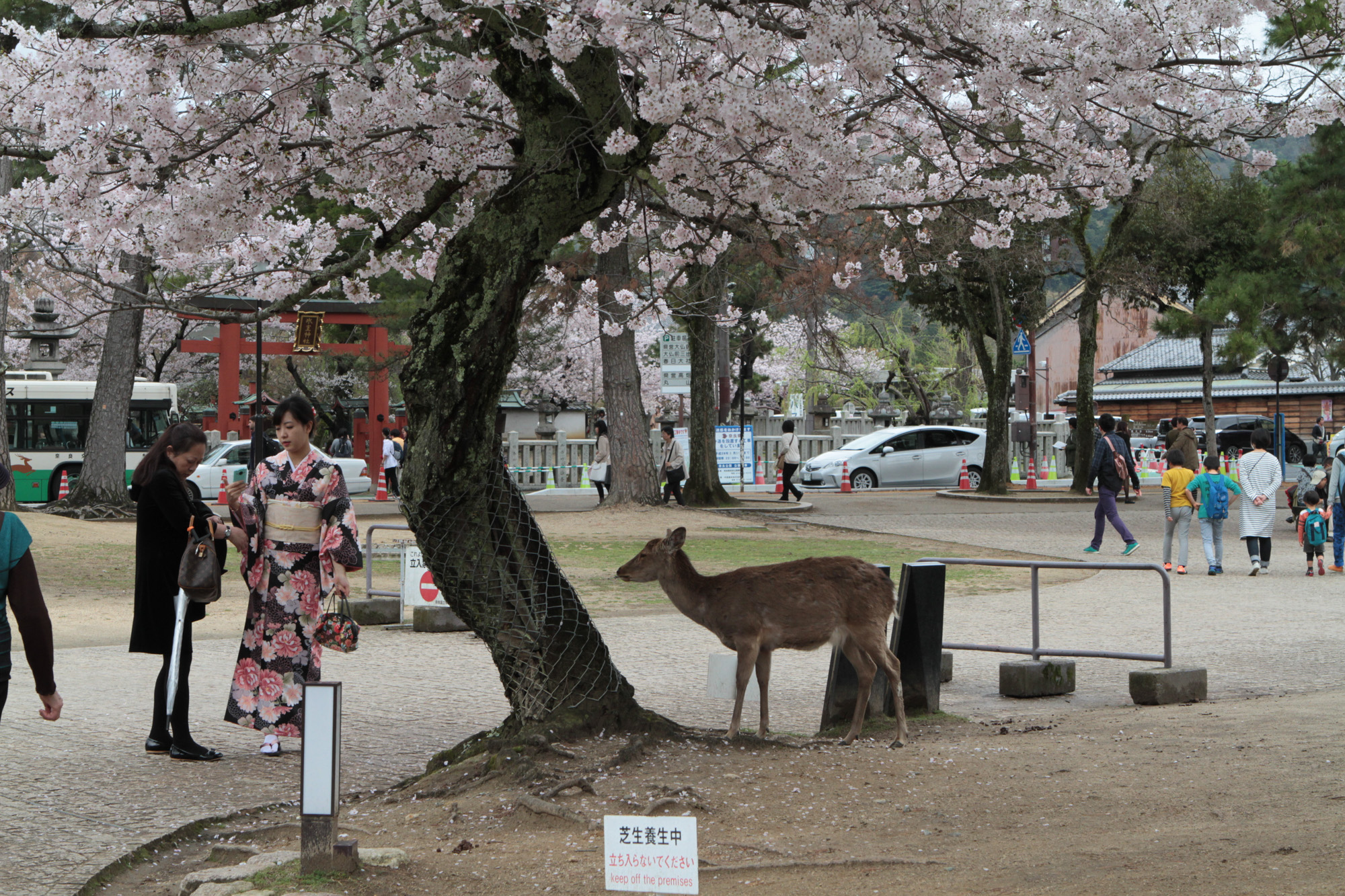On est allé voir des cerfs shika, on les a caressés et on leur a donné à manger des galettes de riz. Ils m’ont arraché les paquets des mains et tiraient mes habits pour en avoir.