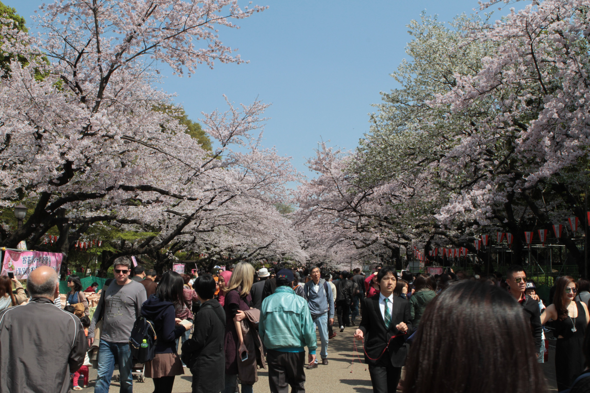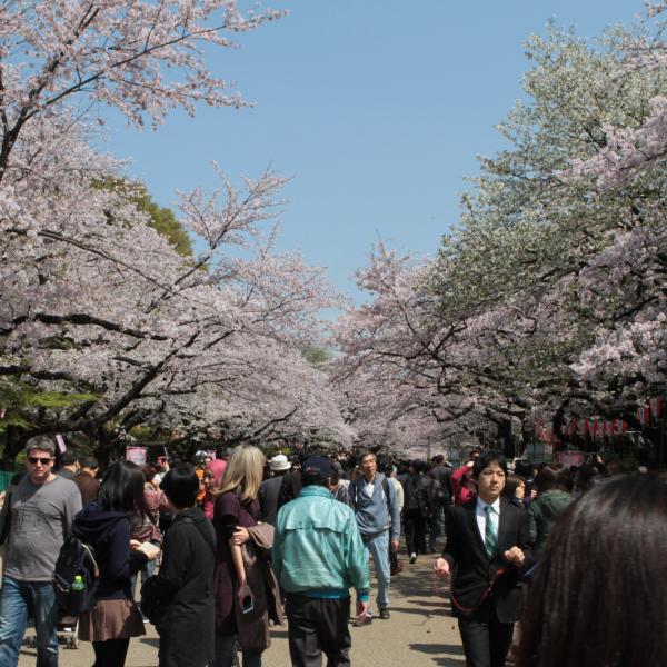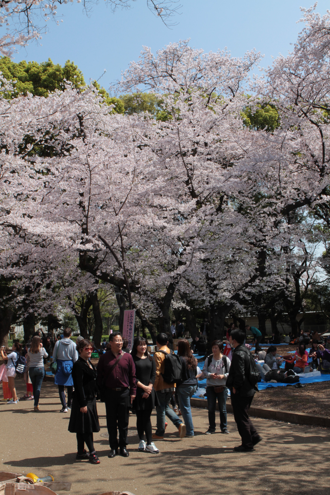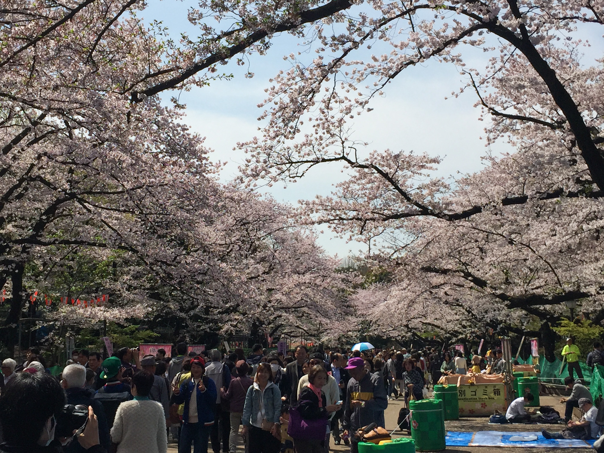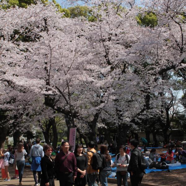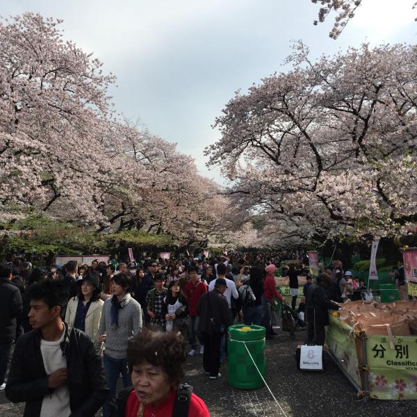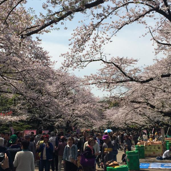 Ce matin, nous avons pris le train pour aller à Ueno, qui est un parc plein de sakura. C’était vraiment magnifique. Un petit peu de vent, et tous les pétales tombaient.