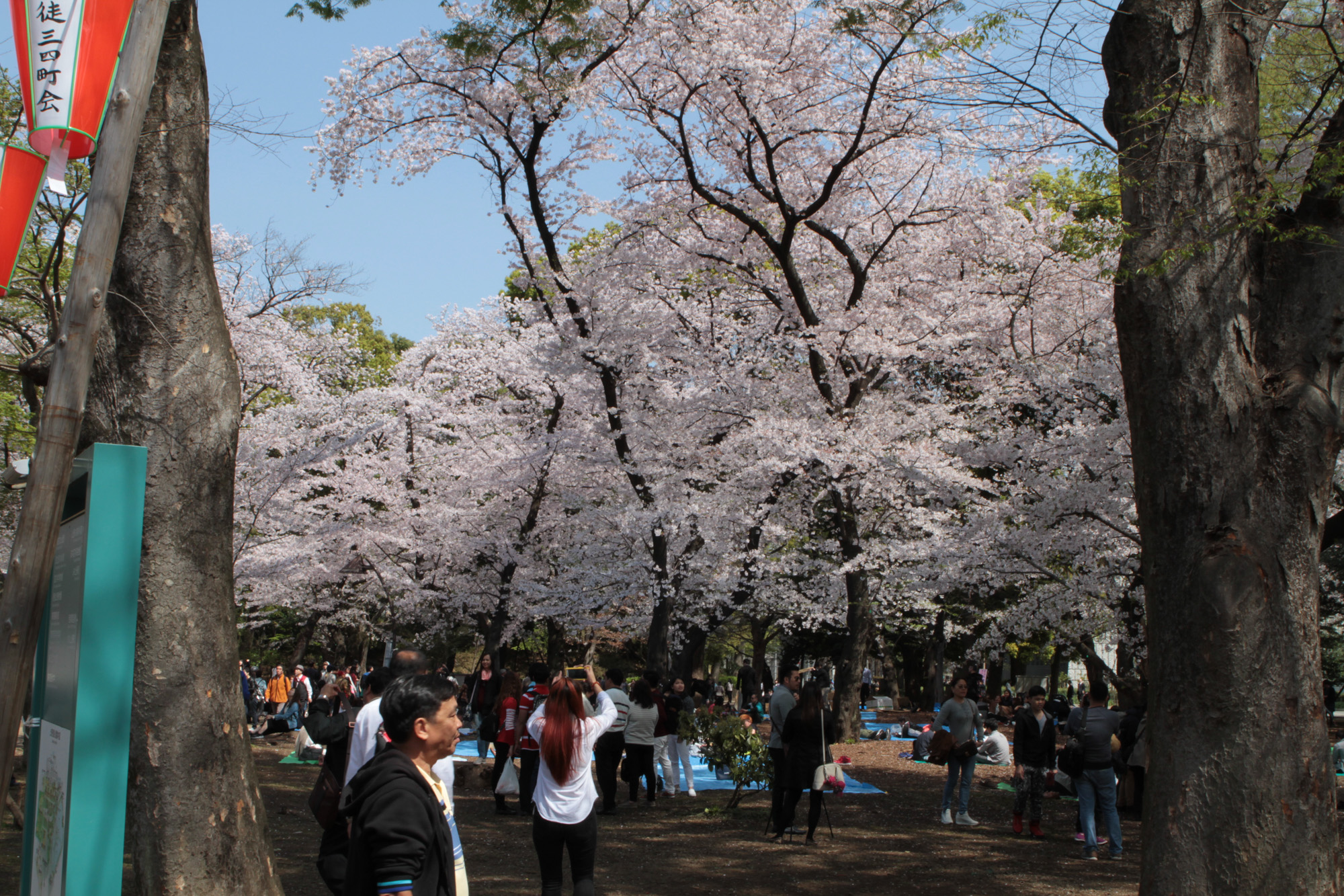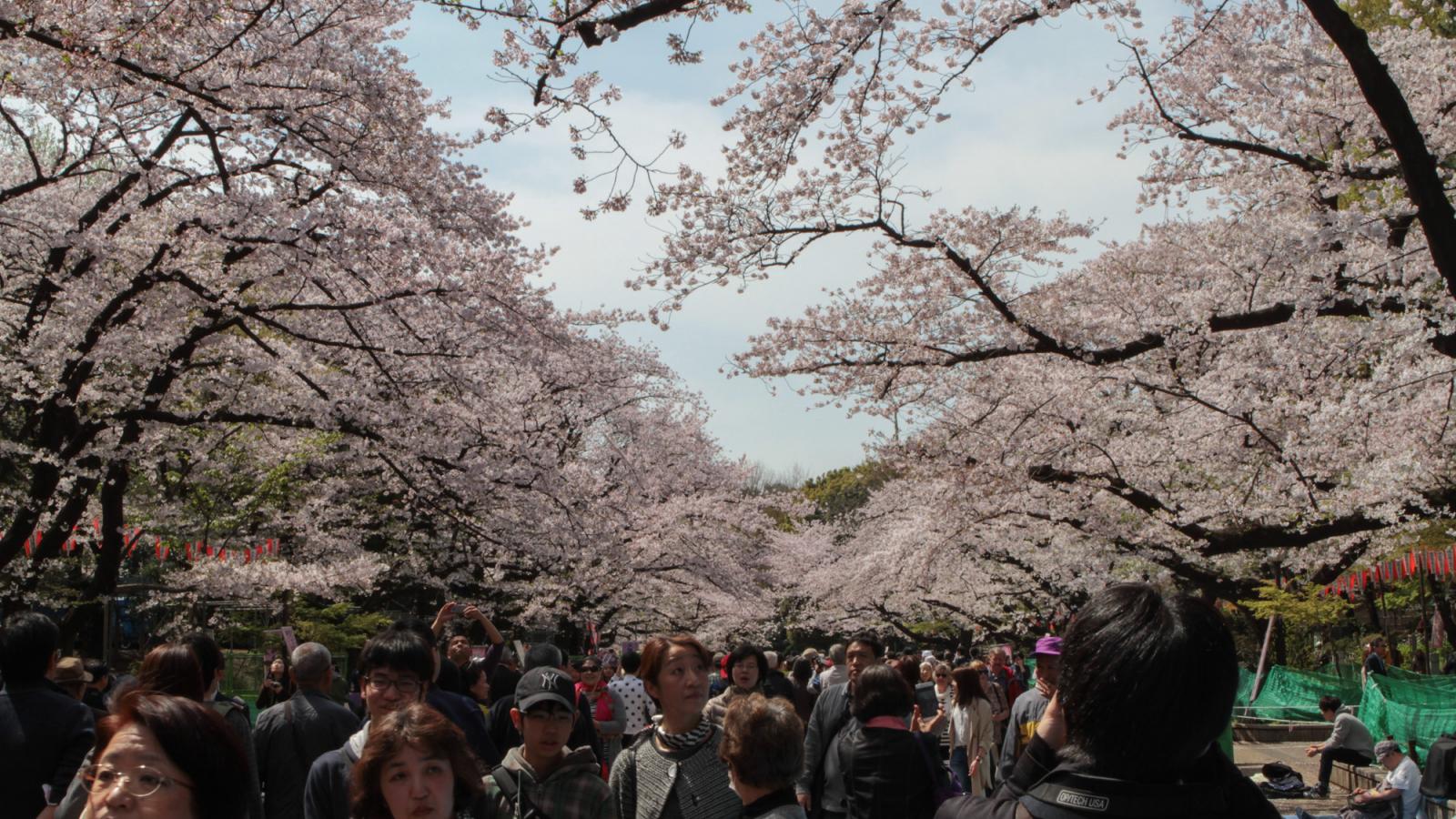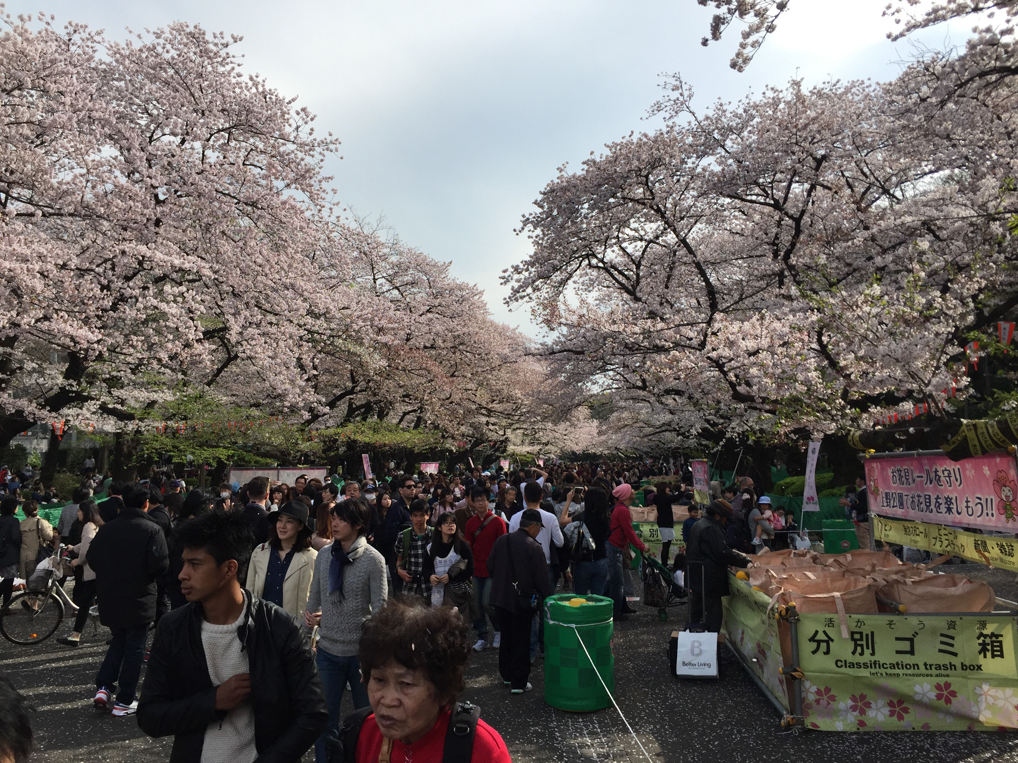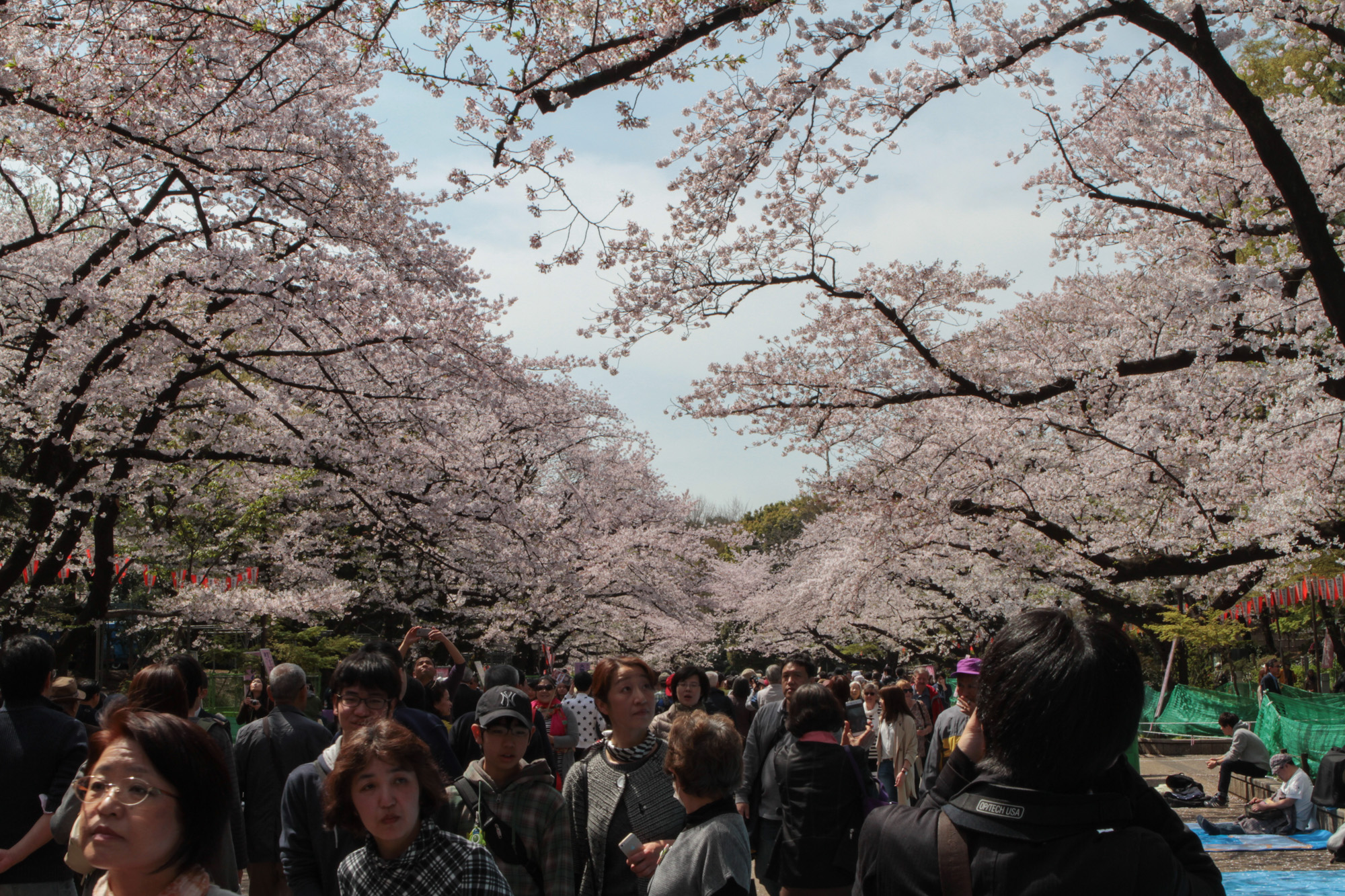 Ce matin, nous avons pris le train pour aller à Ueno, qui est un parc plein de sakura. C’était vraiment magnifique. Un petit peu de vent, et tous les pétales tombaient.